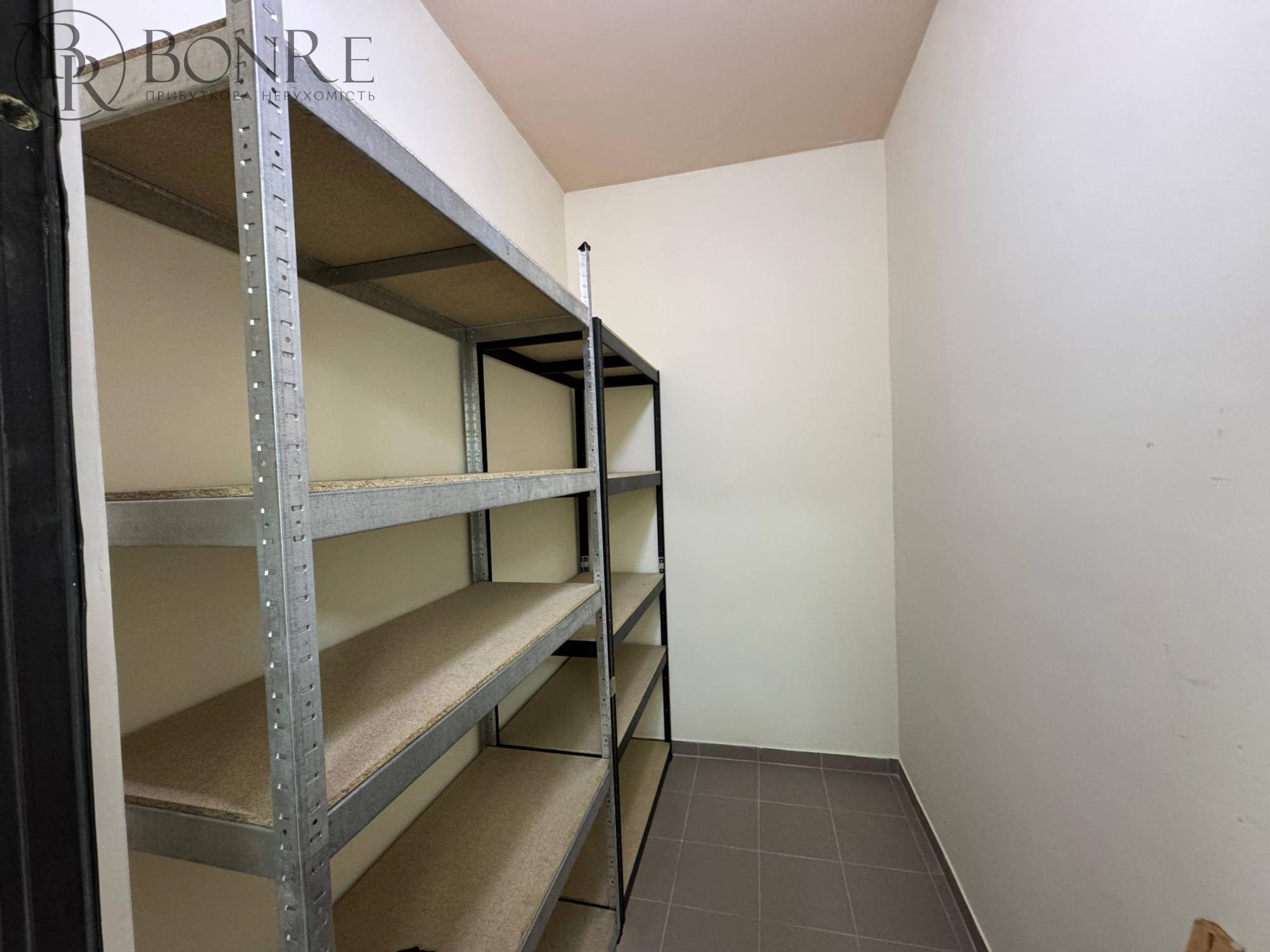 Характеристики: 0-й поверх, з ремонтом, туалет, рукомийник, бойлер, душ, підлога плитка, пожежна безпека, стеля армстронг, світильники лед ,також можуть бути дві додаткові кладові.