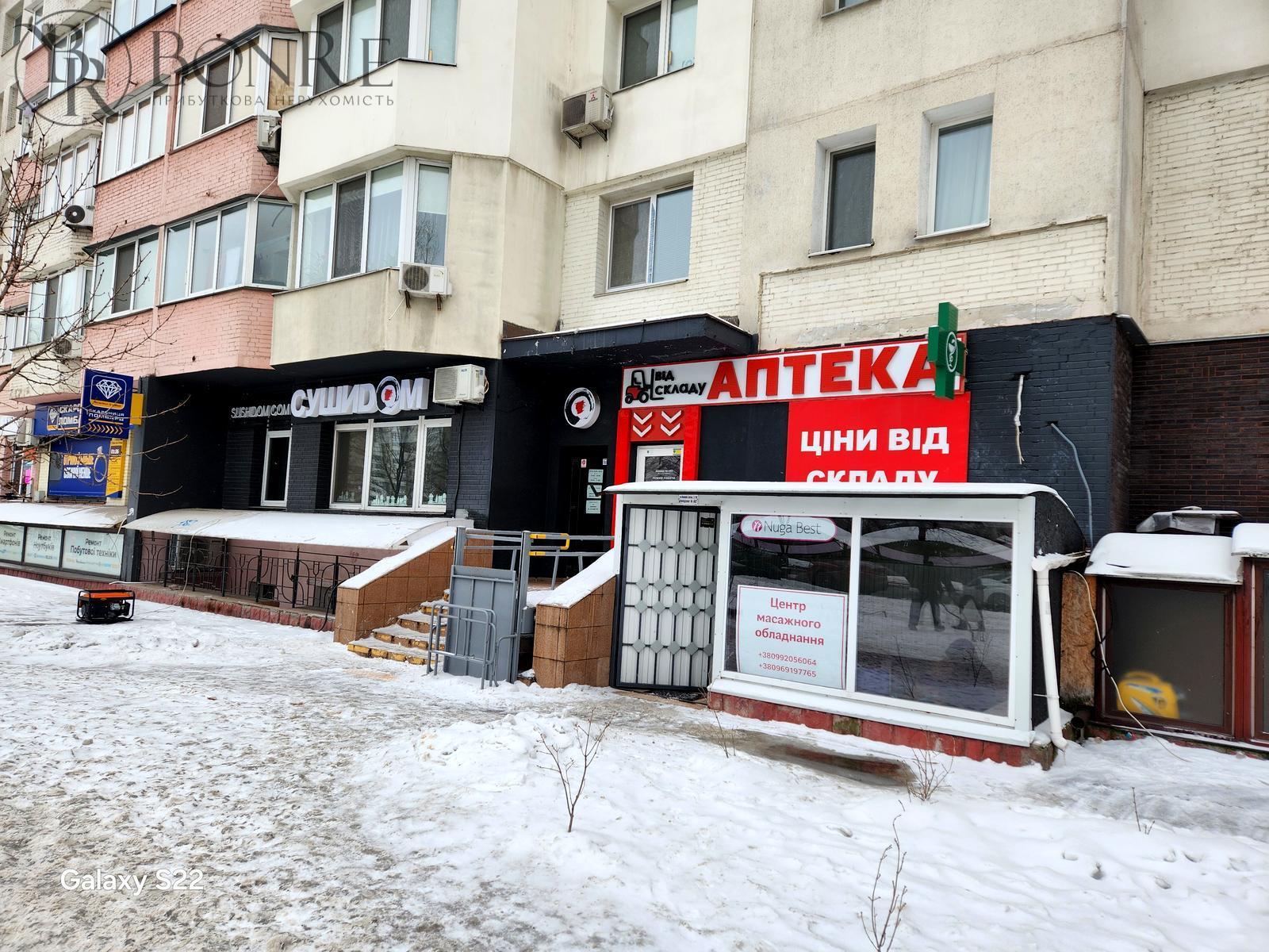 Характеристики: 1-й поверх, фасадний вхід, місце для реклами, потужність електромережі 12кВт, підлога плитка, кондиціонер, санвузол, бойлер, витяжна система.