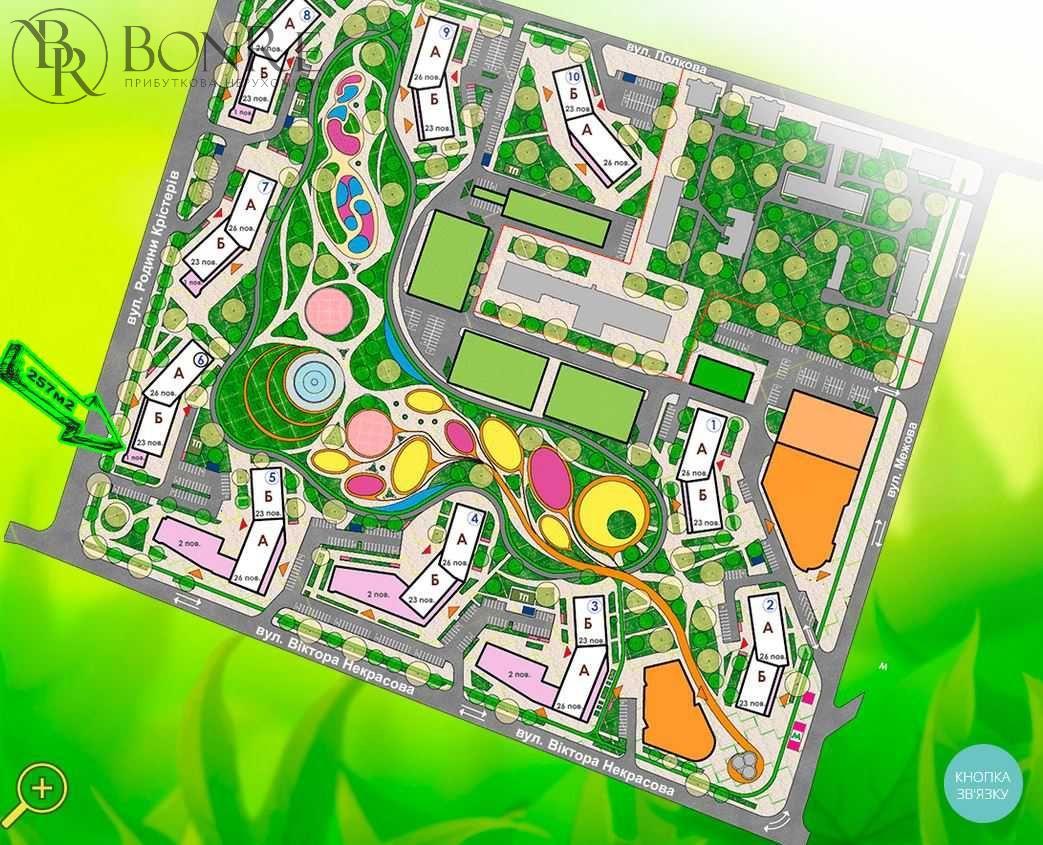 Поруч з: ТРЦ Retroville, OKWINE, ROZETKA, Нова пошта, кав'ярні, магазини, банки, і тд...